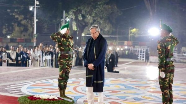 কেন্দ্রীয় শহীদ মিনারে রাষ্ট্রপতির শ্রদ্ধা নিবেদন