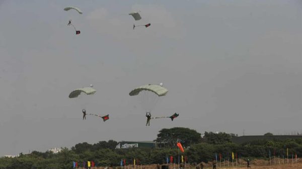 মঙ্গলবার (১৬ ডিসেম্বর) দুপুরের দিকে শুরু হওয়া এই প্রদর্শনীতে আকাশজুড়ে চোখধাঁধানো কসরত দেখাচ্ছে সামরিক উড়োজাহাজ ও হেলিকপ্টার।
