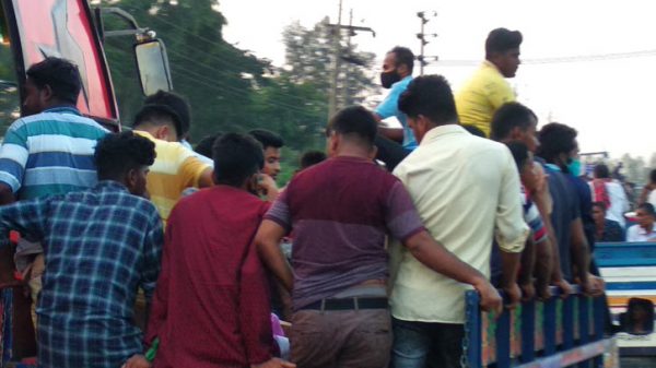 ঝুঁকি নিয়ে ট্রাক-পিকআপে বাড়ি ফিরছে মানুষ